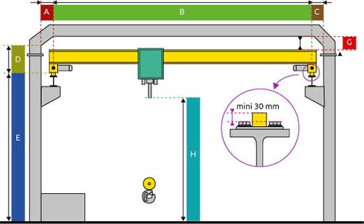 - Possibilité d’utiliser des palans combinés pour un Levage auxiliaire sur un même chariot.